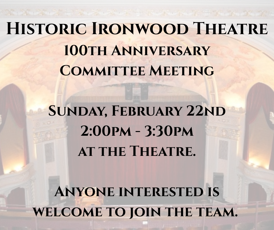 100 Years of the Historic Ironwood Theatre – Anniversary Committee Meeting