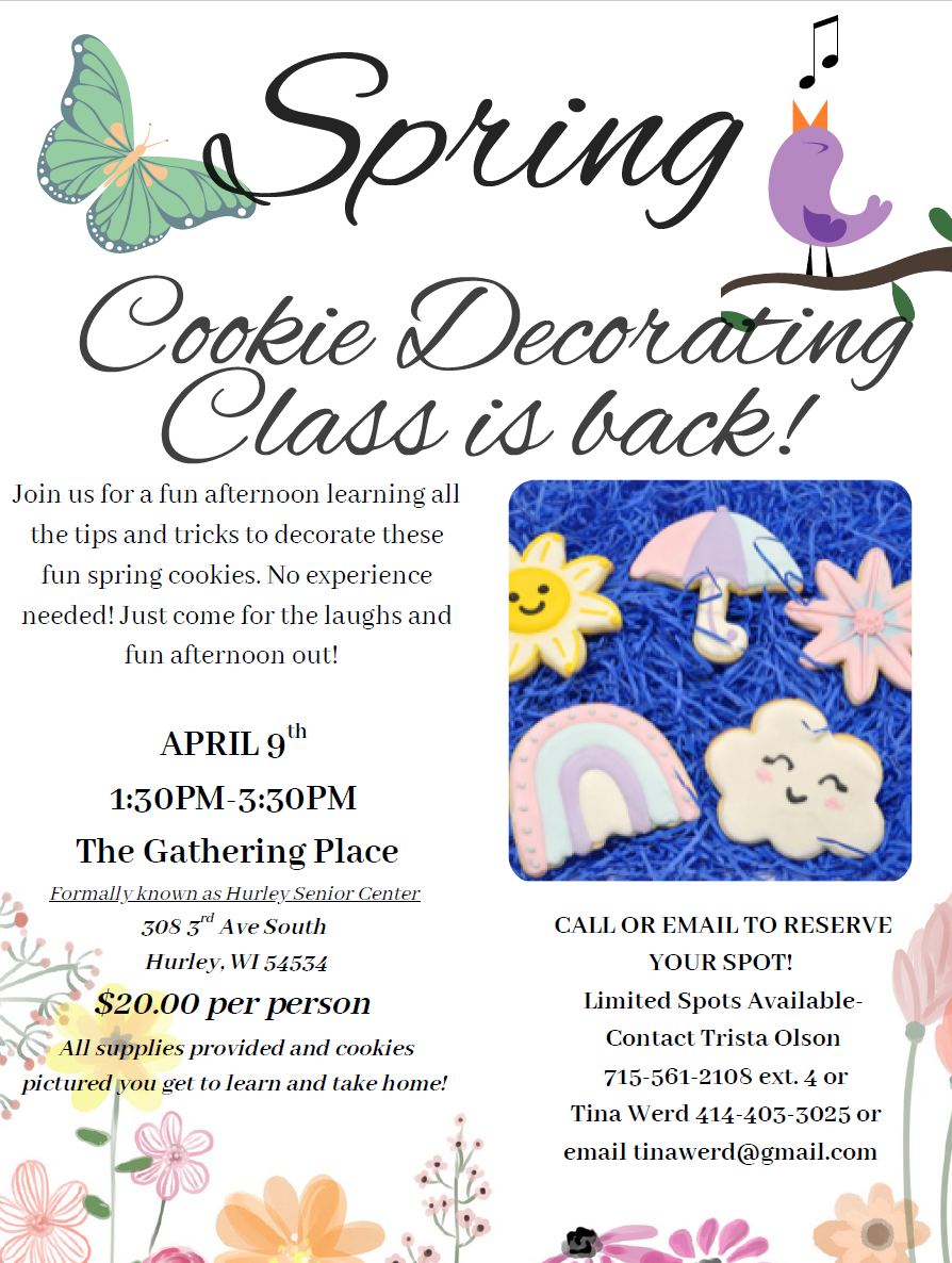 The Gathering Place Transfer Station Road, Watersmeet, MichiganCookie Decorating Class is back! Let's get rid of winter and started thinking spring! This class will be held at The Gathering Place on April 9th from 1:30 - 3:30 […]