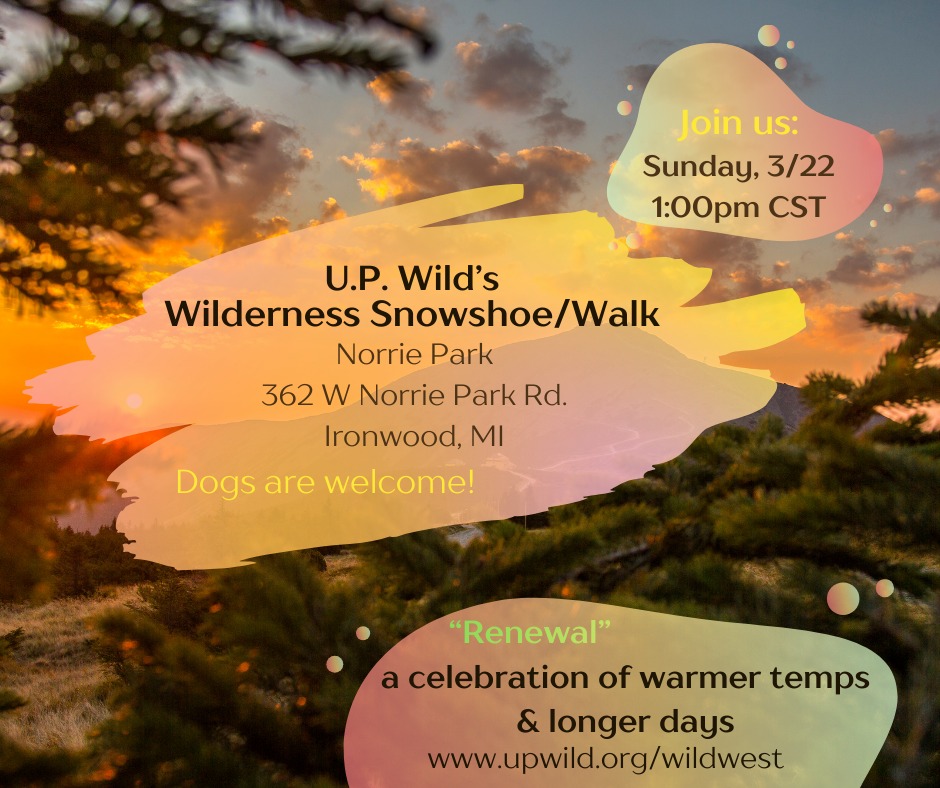 Norrie Park Norrie Park Road, Ironwood, MIJoin upwild.org for a Wilderness Snowshoe/Walk at Norrie Park in Ironwood on Sunday, March 22, 2026. The group will meet at 1:00 pm, CST,