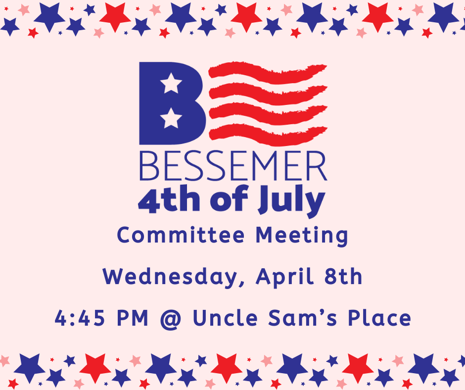 The Bessemer 4th of July Committee will meet on Wednesday, April 8th at Uncle Sam’s Place in Bessemer.