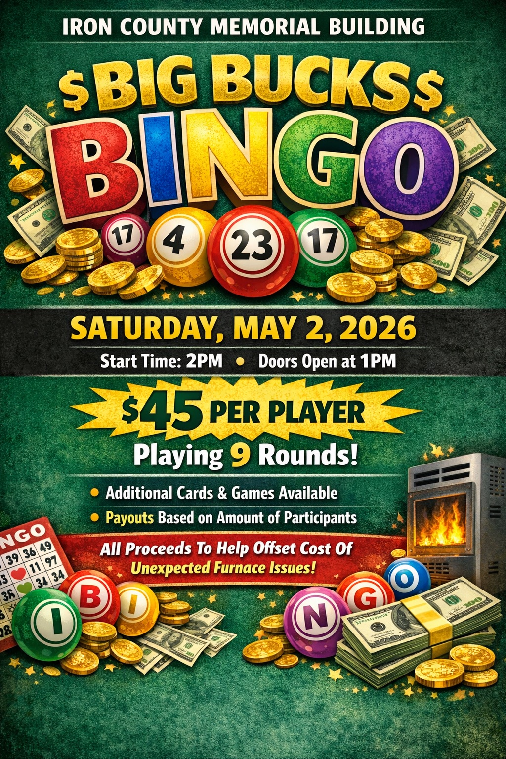 Support this fundraiser to offset the unexpected costs of furnace issues at the Iron County Memorial Building.