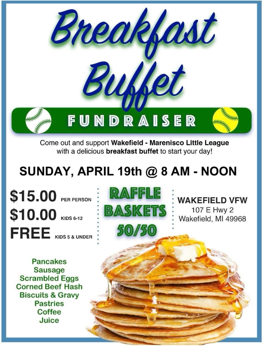 Come help support the Little league and join us for breakfast on Sunday April 19th!