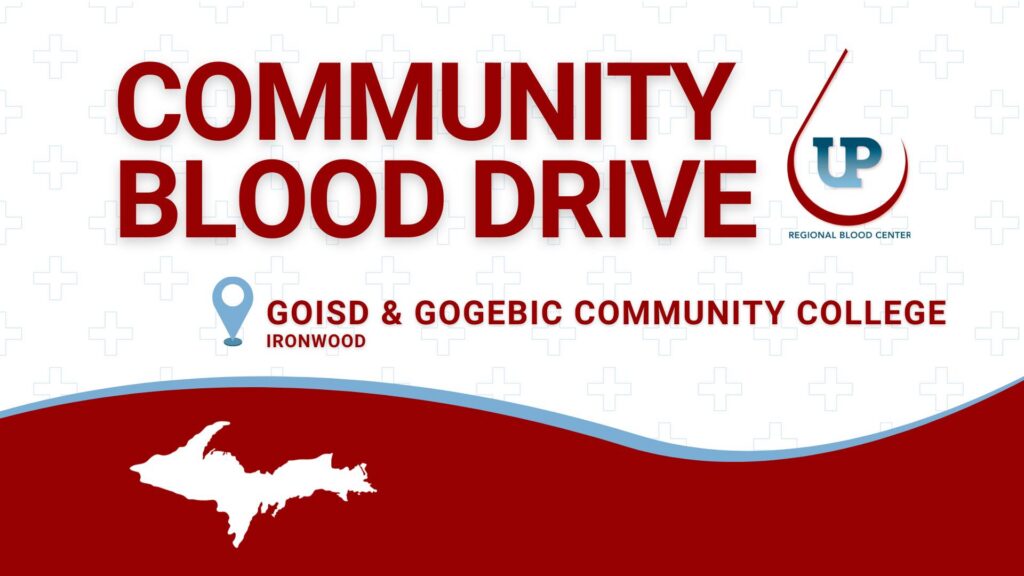 Help out locally by donating on Tuesday, May 5th at the Lindquist Center of Gogebic Community College. Donations accepted from 10 AM – 2 PM.
