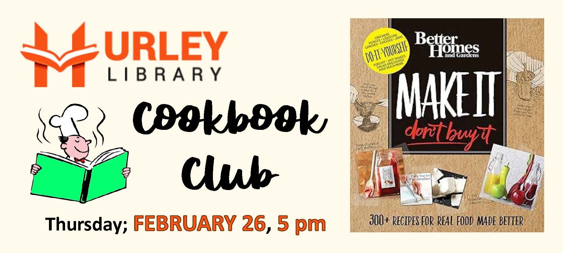 The Cookbook Club next meeting is Thursday, February 26th @ 5 PM.