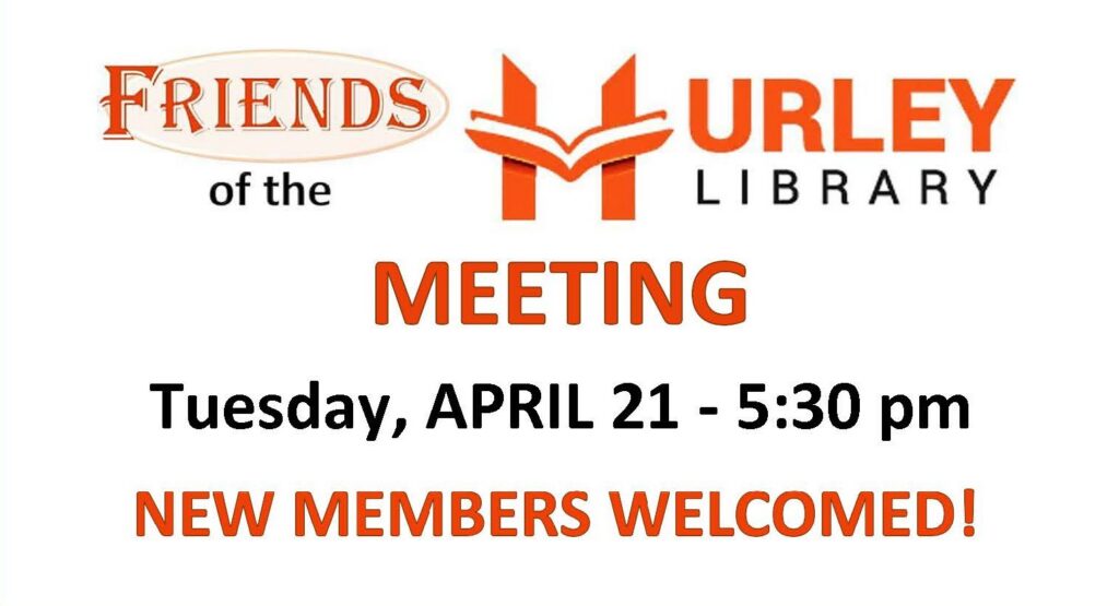 The Friends of the Hurley Public Library are hosting their monthly meeting on Tuesday, April 21st at the Library.