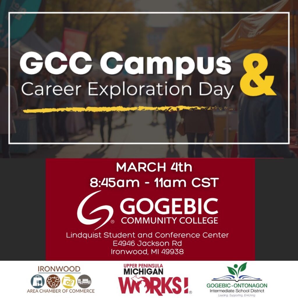 This event is brought to you by the Gogebic-Ontonagon ISD, Ironwood Chamber of Commerce, Upper Peninsula Michigan Works, and Gogebic Community College