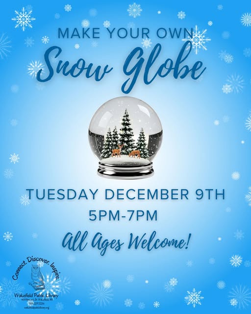 Experience the joy of creating your own snow globe at the Wakefield Public Library! This fun activity lets you capture winter magic in a keepsake that brings warmth for years.