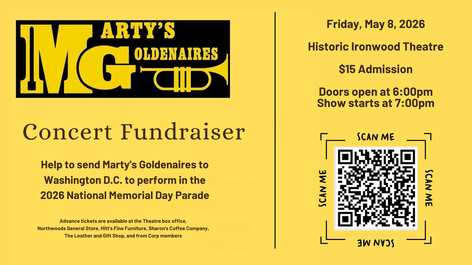 You can be a part of sending them there by attending a special concert at the Historic Ironwood Theatre on Friday, May 8th at 7 PM.