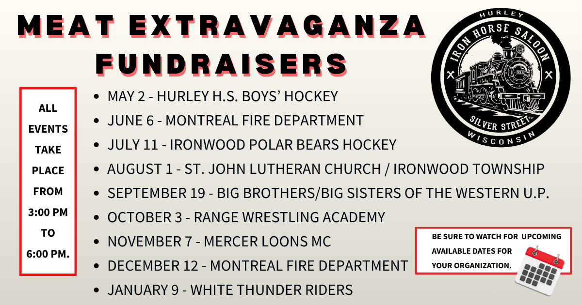 Iron Horse Saloon in Hurley offers local organizations the opportunity to host their Meat Extravaganza fundraiser at their location.