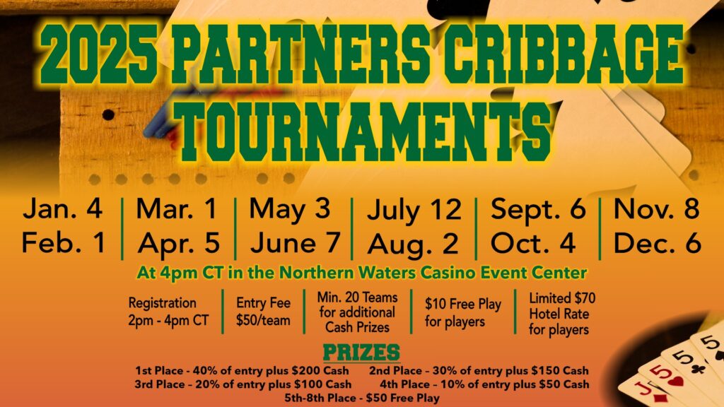 If you like playing partners cribbage, then Northern Waters Casino has events for you.