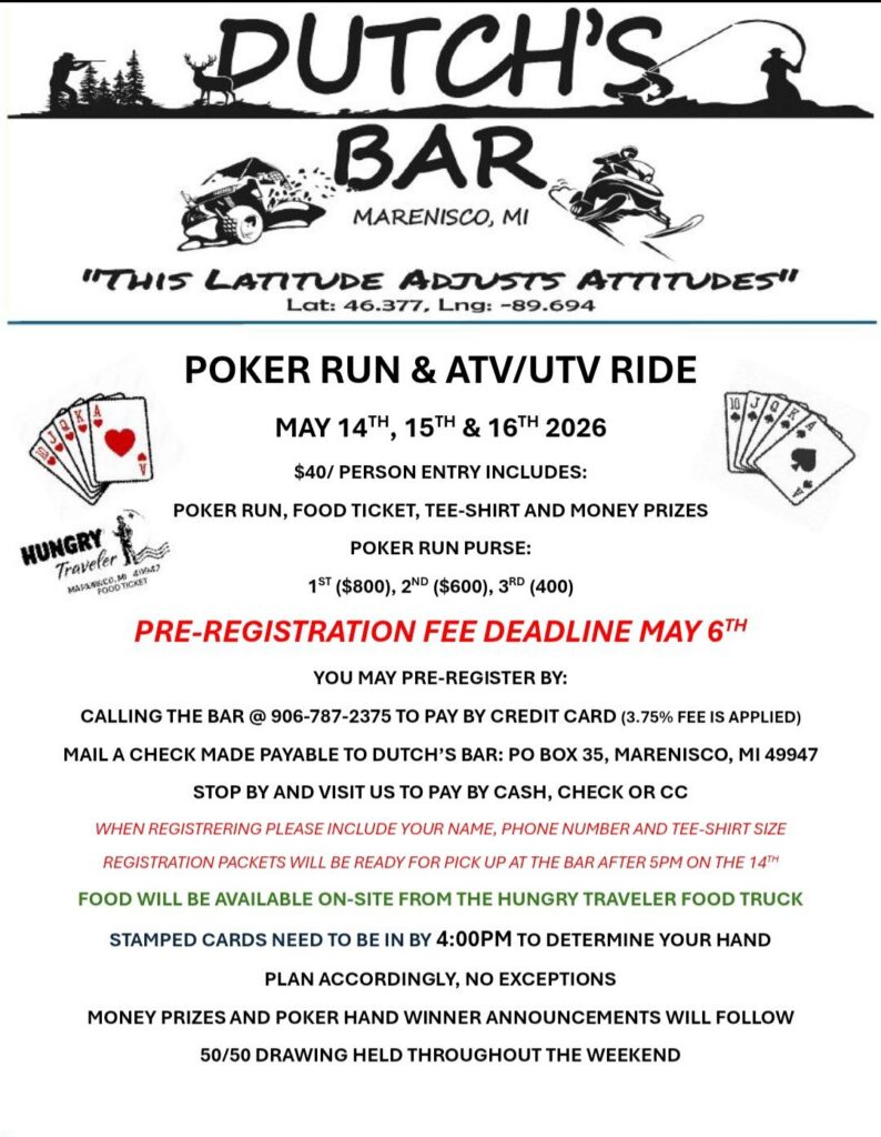 May 14, 15, and 16, 2026 Dutch’s Bar in Marenisco is organizing one heck of an event.