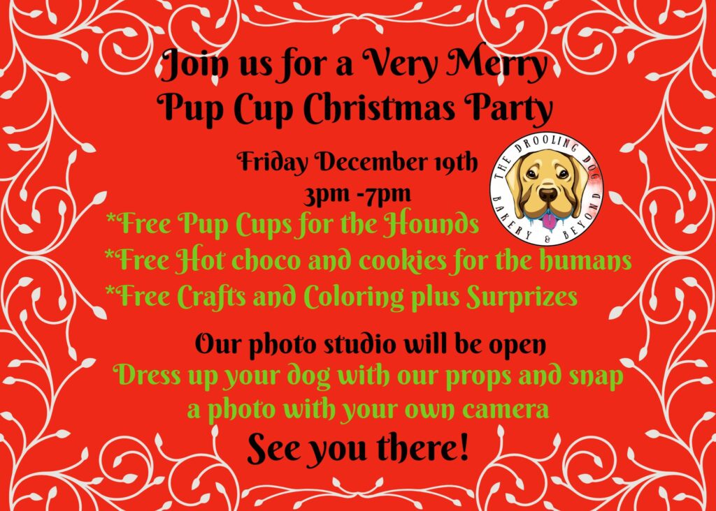 The Drooling Dog Bakery and Beyond invites lucky hounds and their families to join in FREE pup cup night on Friday, December 19th from 3 – 7 PM.