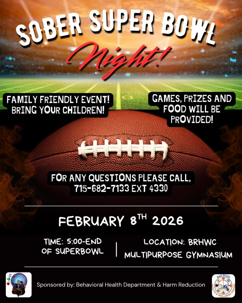 Family Sober Super Bowl February 8th 5:00 PM Bad River Health & Wellness Center