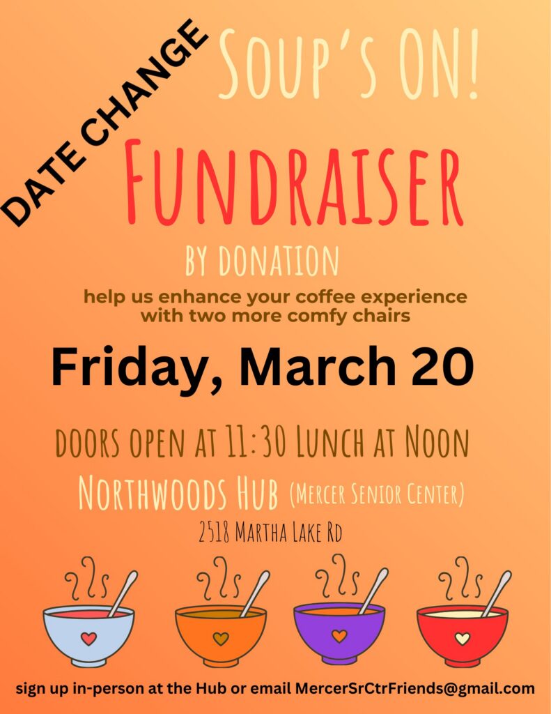 Soup’s On Fundraiser at the Northwoods Hub (Mercer Senior Center) has been moved to March 20th.