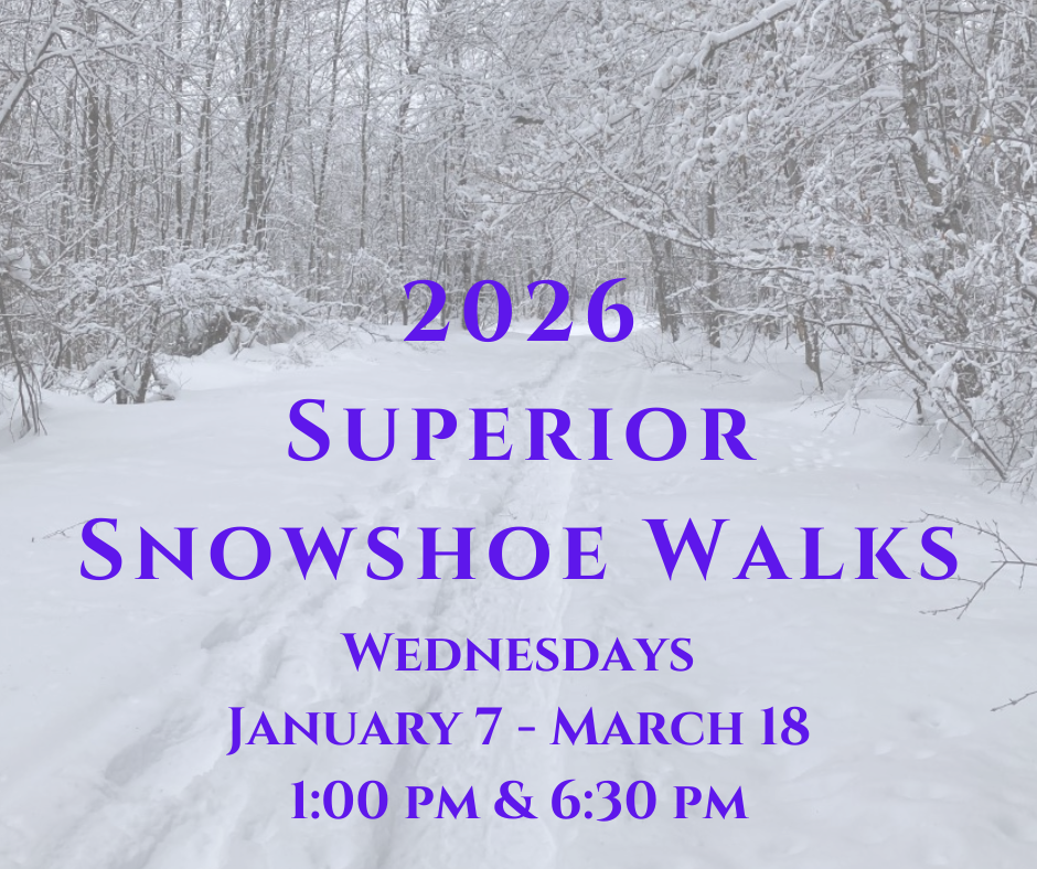 Once again Superior Snowshoes Walks is offering group adventures on Wednesdays from January 7 – March 18, 2026.