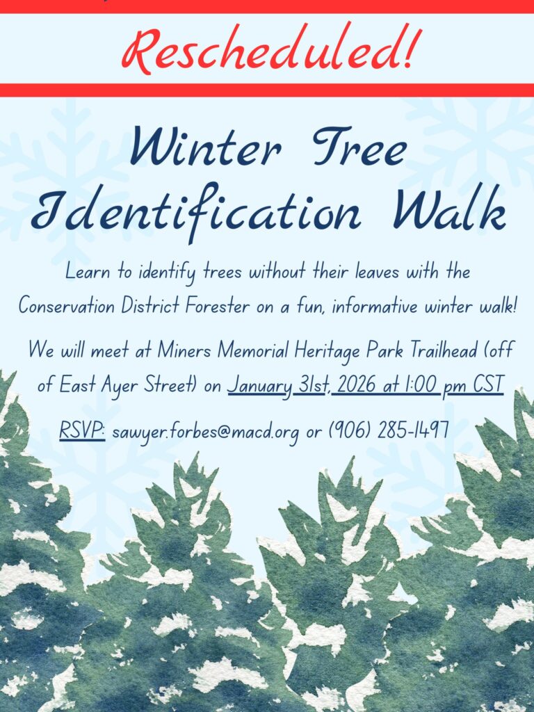 Join the Gogebic Conservation District forester on a Winter Tree Identification Walk! The event will be at Miners Memorial Heritage Park on Saturday, jaunary 31st, at 1 pm CST. If you are interested in learning how to identify native trees, we would love to see you there!