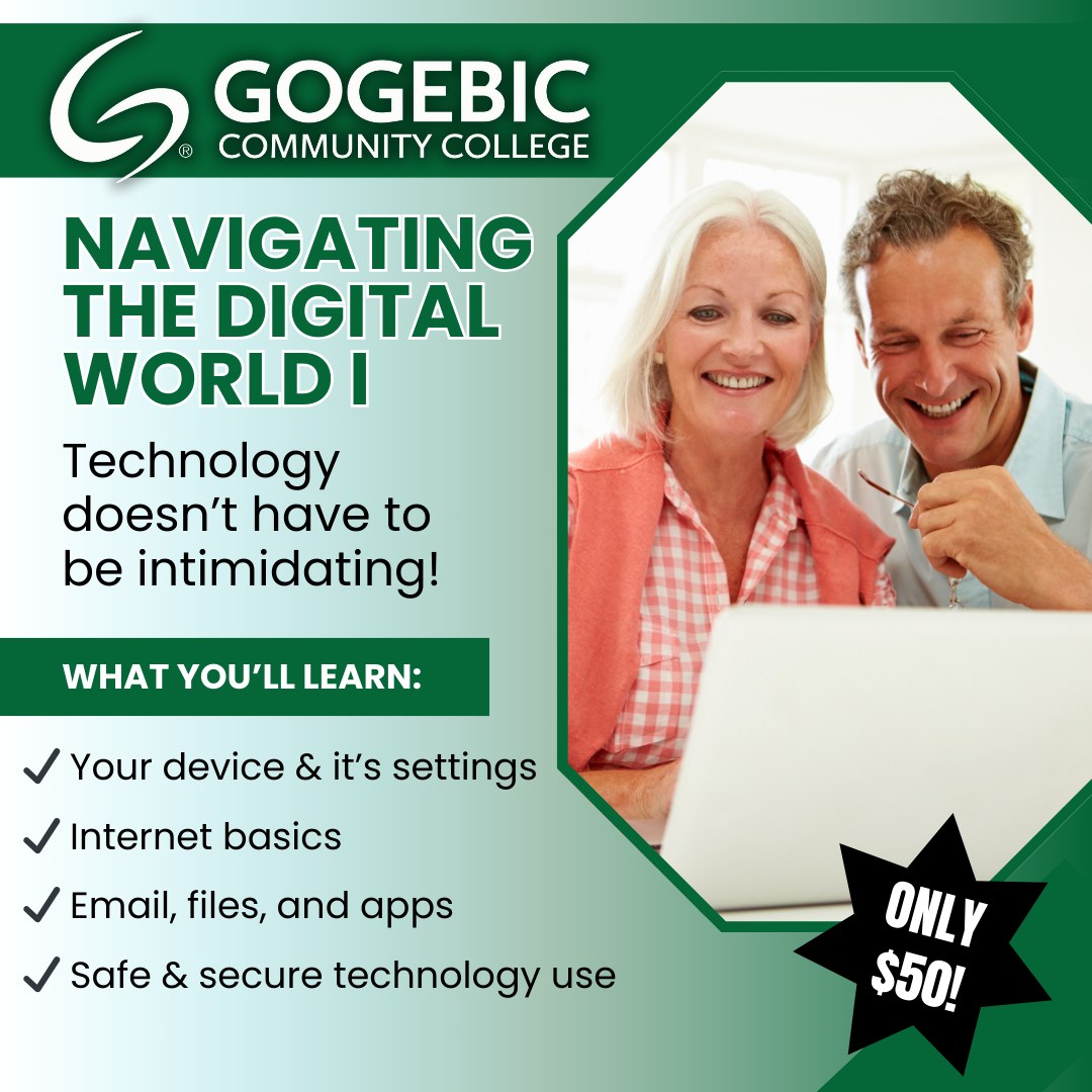 Gogebic Community CollegeWe are so excited to bring this opportunity to the community at a great price! This course is a new beginner-friendly, hands-on class designed to help you feel more confident using everyday technology in a supportive, no-pressure environment. This class is filling up fast, so don't hesitate to enroll! Participants will learn practical skills for […]