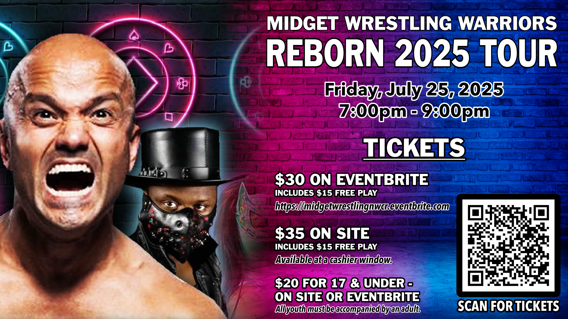 Northern Waters Casino Resort N5384 US 45, WatersmeetMIDGET WRESTLING WARRIORS "REBORN" TOUR 2025 Prepare yourself for an unforgettable night of high-flying, hard-hitting action as the Midget Wrestling Warriors bring their "Reborn" Tour to the Northern Waters Casino in Watersmeet, MI! BUY TICKETS in house or on Eventbrite: https://midgetwrestlingnwcr.eventbrite.com 📅 Date: Friday, July 25, 2025 📍 Location: Northern Waters Casino Address: N5384 US-45 […]