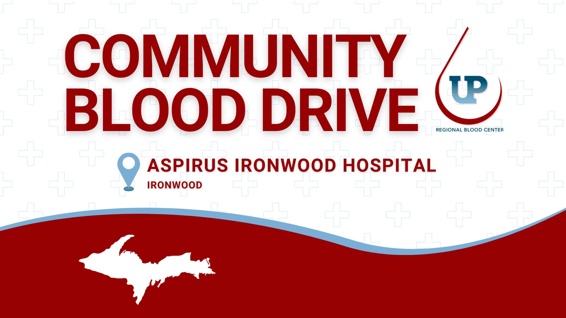 Aspirus Ironwood Hospital N10561 Grand View Lane, Ironwood, MIAll Blood collected by the UP Regional Blood Center stays in Gogebic County and 11 other UP Hospitals. Please come on out and support your local blood center. This event will take place on Wednesday, July 30th at Aspirus Ironwood Hospital from 11am - 2pm.