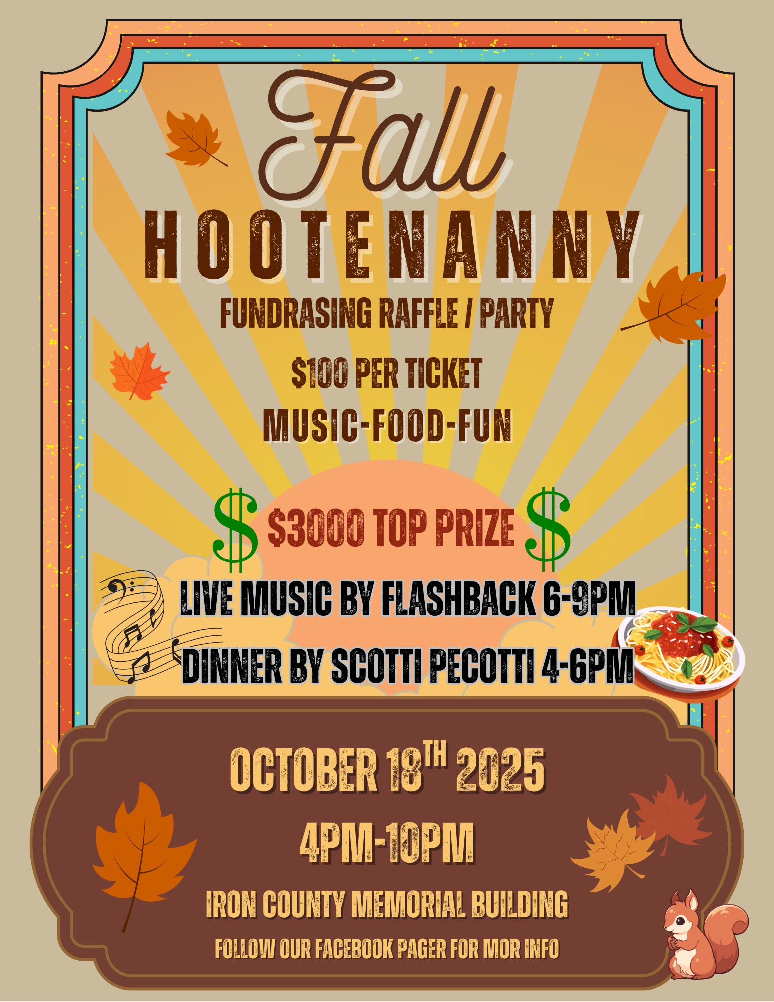 Iron County Memorial Building 201 Iron Street, Hurley, WICome join us for a night of fun, food, drinks, live music and raffle winning on Saturday, October 18th from 4 - 10 PM at the Iron County Memorial Building. In efforts to reach our fundraising goal to install a new ramp and upgrade electrical this raffle will provide a night to remember and a […]
