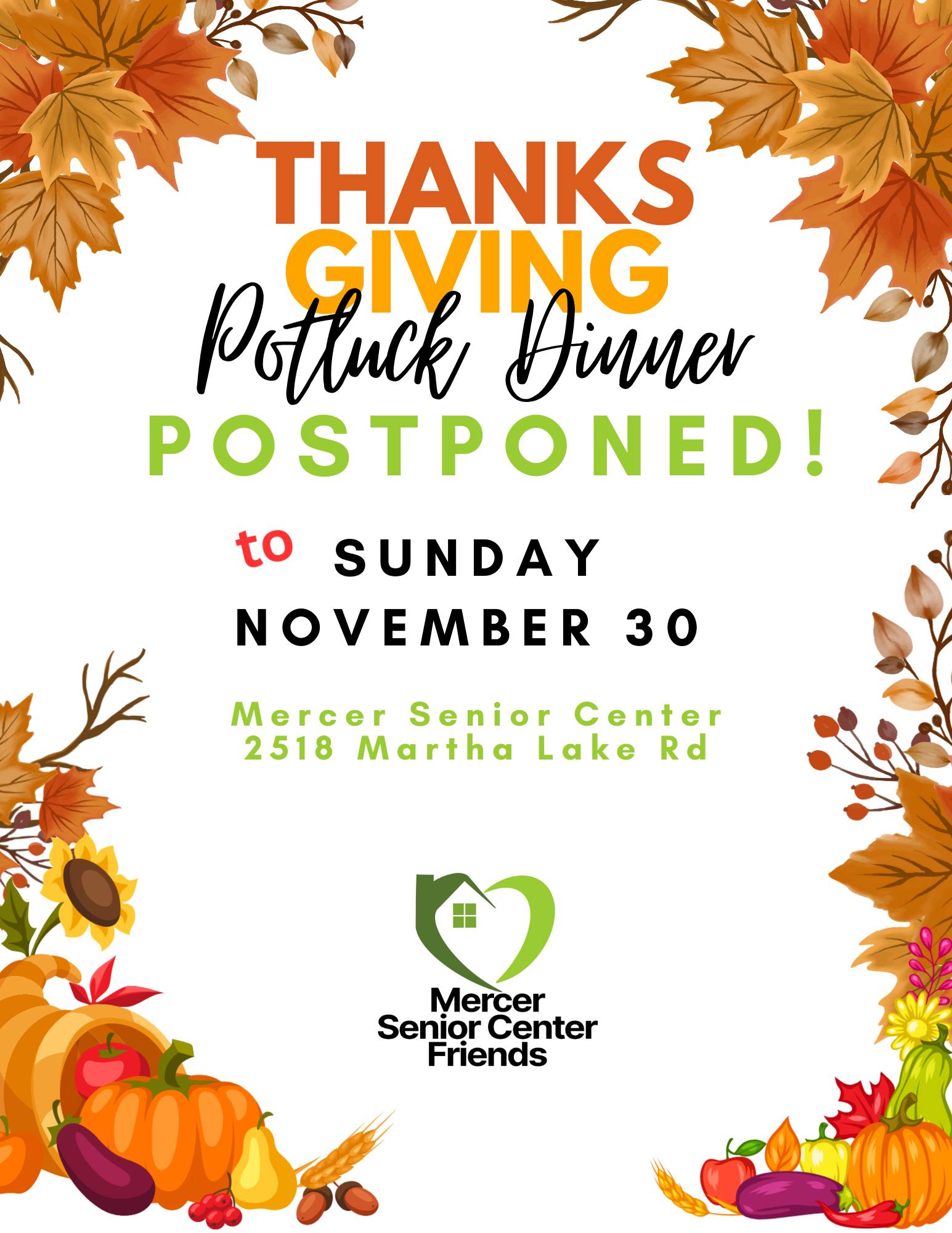 Mercer Senior Center 2518 Martha Lake Road, Mercer, WIJoin the Mercer Senior Center on Thanksgiving! They're making dinner plans now at the Mercer Senior Center. Sign up at the Center or use this link: https://www.mercerseniorcenter.com/thanksgiving-dinner/ Hors d' Oeuvres @ noon, meal at 1:30 pm. Please bring a side dish to share. Meat and gravy provided. See the flyer below for additional information.